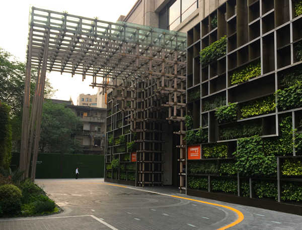 酒店的門口的設計在一個酒店的整體設計中都占據(jù)了很重要的位置。上圖中的酒店門口采用了木質(zhì)結構的元素,把川西建筑文化特色——講究天人合一的自然觀與環(huán)境觀,表達的淋漓盡致。
